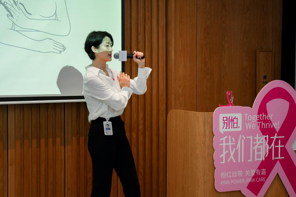 当天,国际顶尖医学专家分享了乳腺癌前沿治疗思路,多专业医护团队详细阐释并解答了术后康复和预防筛查的问题,康复科治疗师带领现场来宾体验了身心疗愈。