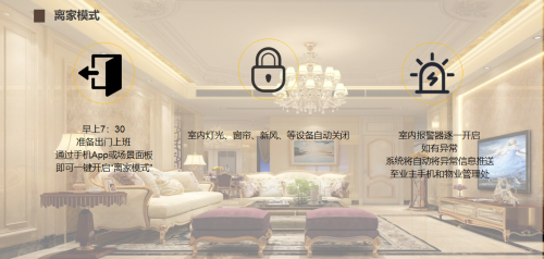 更值得一提的是项目的智能场景设置,支持100种模式自定义,业主通过智能终端可一键开启“回家模式”“外出模式”“就餐模式”“会客模式”等,比如“回家模式”启动时,灯光自动亮起、空调调节至适宜温度、窗帘缓缓拉开,让“无感”智慧生活成为现实。