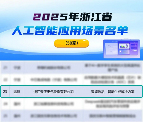 近日,浙江省经济和信息化厅正式公布2025年浙江省人工智能应用场景、应用标杆企业名单,天正电气(605066.SH)旗下“智能选品、智能生成解决方案”应用场景脱颖而出,凭借其领先的AI技术实践及应用上榜人工智能应用省优名单。
