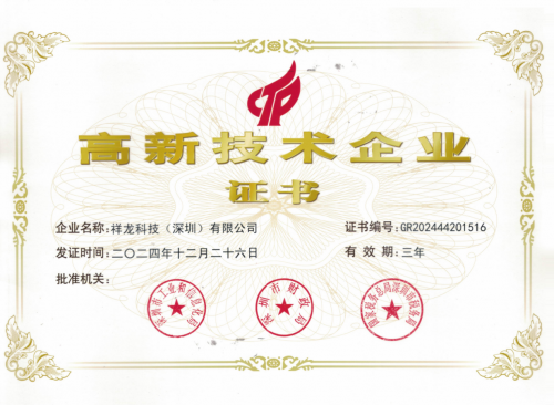 祥龙科技自2017年扎根深圳宝安以来,已发展为集PCB设计、制板、物料采购、SMT贴片、组装测试及国内外贸易于一体的国家级高新技术企业。2024年,公司再次通过国家高新技术企业认定,并首次获评“国家级科技型中小企业”,标志着其在技术创新与产业化能力上获得权威认可。