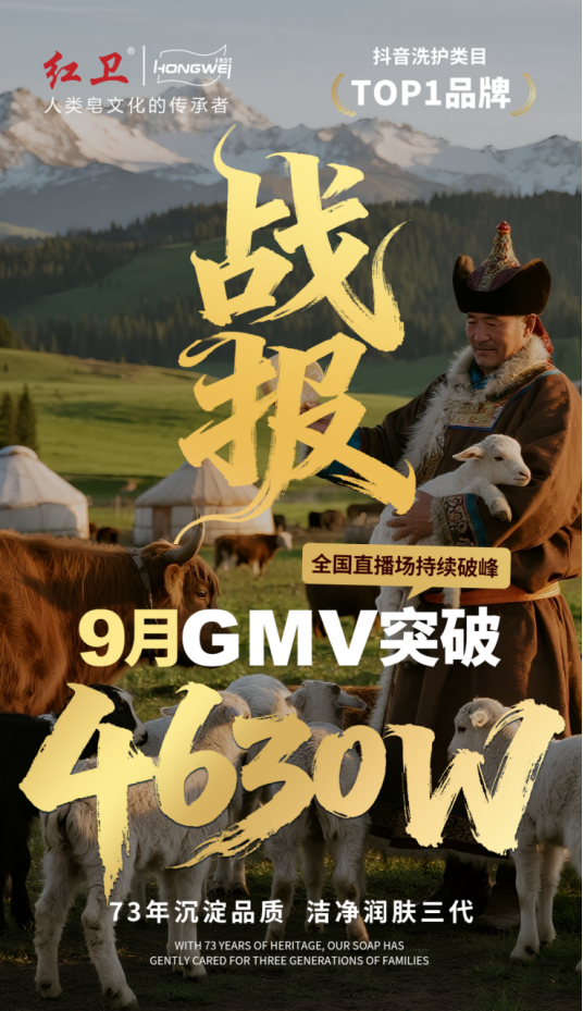 通过这场全网火爆的品牌重塑战役,红卫皂业抖音直播间日均观看人数从1.2万增至18.5万,单场直播最高GMV突破800万。除了给红卫带来月销从百万级到数千万的跨越之外,还一举实现了品牌的重塑——大量的年轻消费者惊呼红卫变得“可靠”“值得信赖”了。合作后,红卫18-35岁用户占比从10%提升至45%,品牌复购率从18%提升至35%。