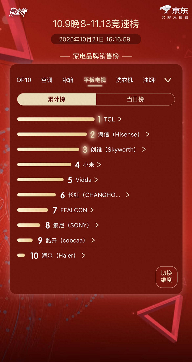 这方面,要我说,还是得看市场的风向。纵观今年电商平台的竞速榜单,国产品牌交出的答卷都很亮眼,其中尤其是以我们国产品牌TCL一骑绝尘领跑电视榜单。这一现象折射当前我们挑这种实用大家电的逻辑——谁能提供更好的技术,带来更亮眼的产品,真正考虑到我们消费者的观影本真需求,谁就能获得市场的青睐。