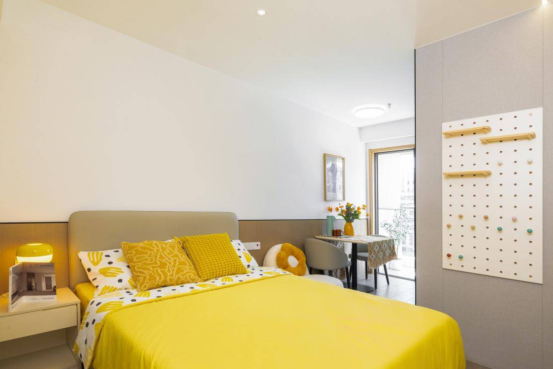 全屋标配独立功能阳台,既解决日常晾晒之需,也成为对话天空、拥抱自然的诗意角落。房间内采用E0级环保建材,配备品牌家电,以健康为基,以品质为核,真正实现“拎包入住”,为青年住客提供一步到位的安居体验。