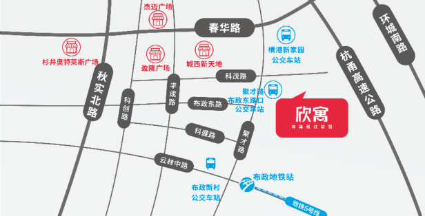 欣寓云璟里与地铁5号线布政站直线距离约1公里,环城南路、杭甬高速等城市主干道环伺,构建30分钟通达全城的便捷路网,让住客可快速连接城市核心区域。