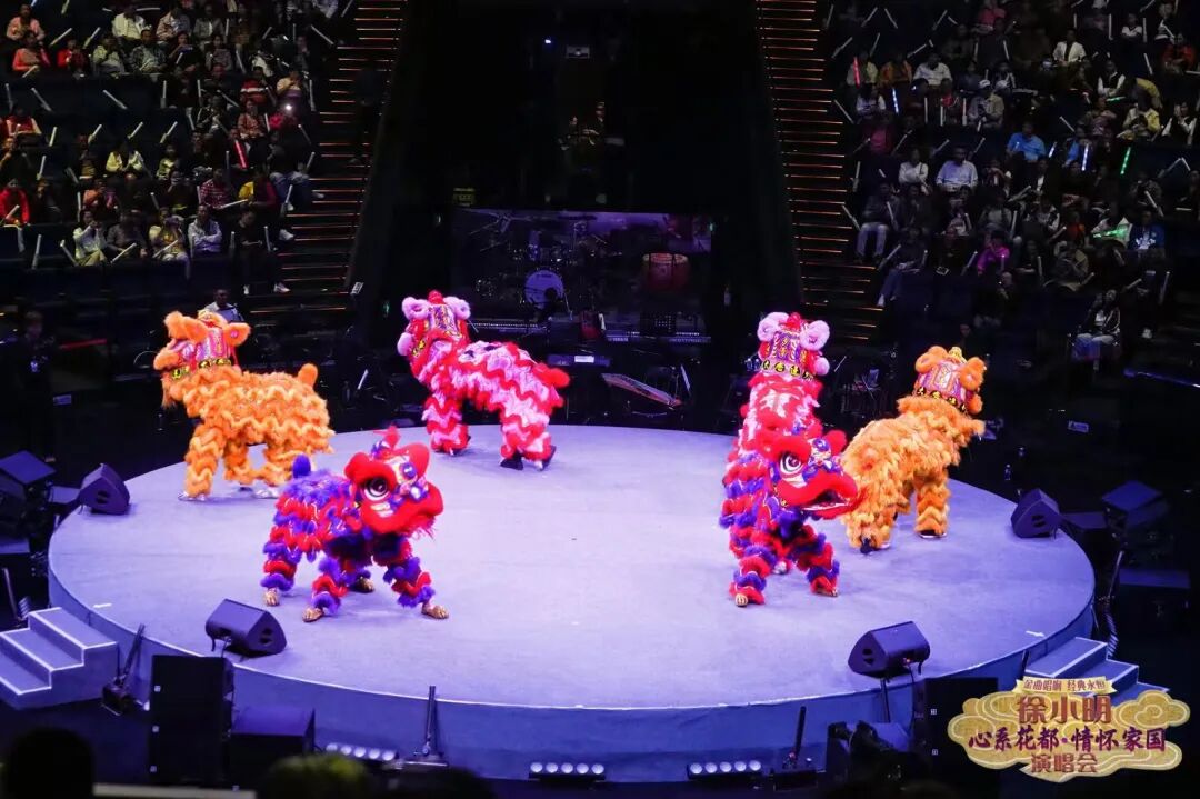 当晚 7 点 30 分,随着醒狮队铿锵有力的鼓点与灵动跳跃的身姿引领下,演唱会正式拉开序幕。身兼艺术总监与总导演的徐小明博士,以歌手身份正装登场亮相,瞬间点燃全场热情。