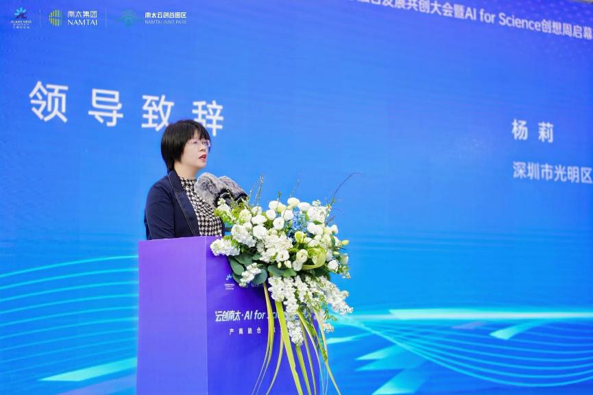 光明区委常委、统战部部长杨莉在致辞中表示,人工智能正成为新质生产力的重要驱动力,光明区将聚焦“AI+生命健康”核心赛道,加快推动科研成果转化与产业集聚,打造具有全球竞争力的未来产业新高地。我们希望通过政府引导、企业主体、资本赋能的多方协同机制,形成从技术创新到商业落地的全链条生态,让光明成为AI产业创新的策源地。