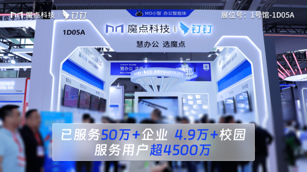10月28日,第二十届中国国际社会公共安全博览会在深圳会展中心开幕。CPSE安博会始于1989年,被誉为“全球安防第一展”。作为全球规模最大、影响力最广的安防行业盛会,本届吸引了150多个国家和地区的嘉宾注册参会,1100家中外企业带来2万多种新技术新产品参展。魔点以“慧办公 选魔点”为主题,并联合钉钉共同参展,展示钉钉AI 1.0和魔点慧办公、慧园区、魔点校园、慧生态四大业务,与各行各业参会者共话AI时代的办公方式。