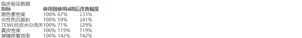 提升角质层含水量27%,镇静泛红、降低炎性反应。