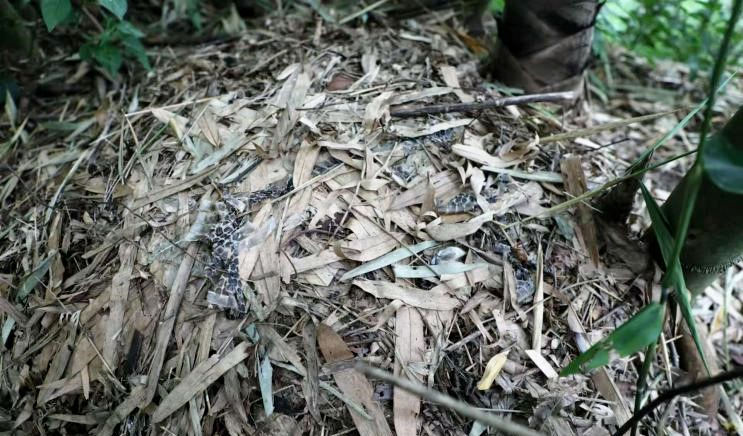 眼镜王蛇巢及留下的蛇蜕。图源:云南高黎贡山保护区保山管护局