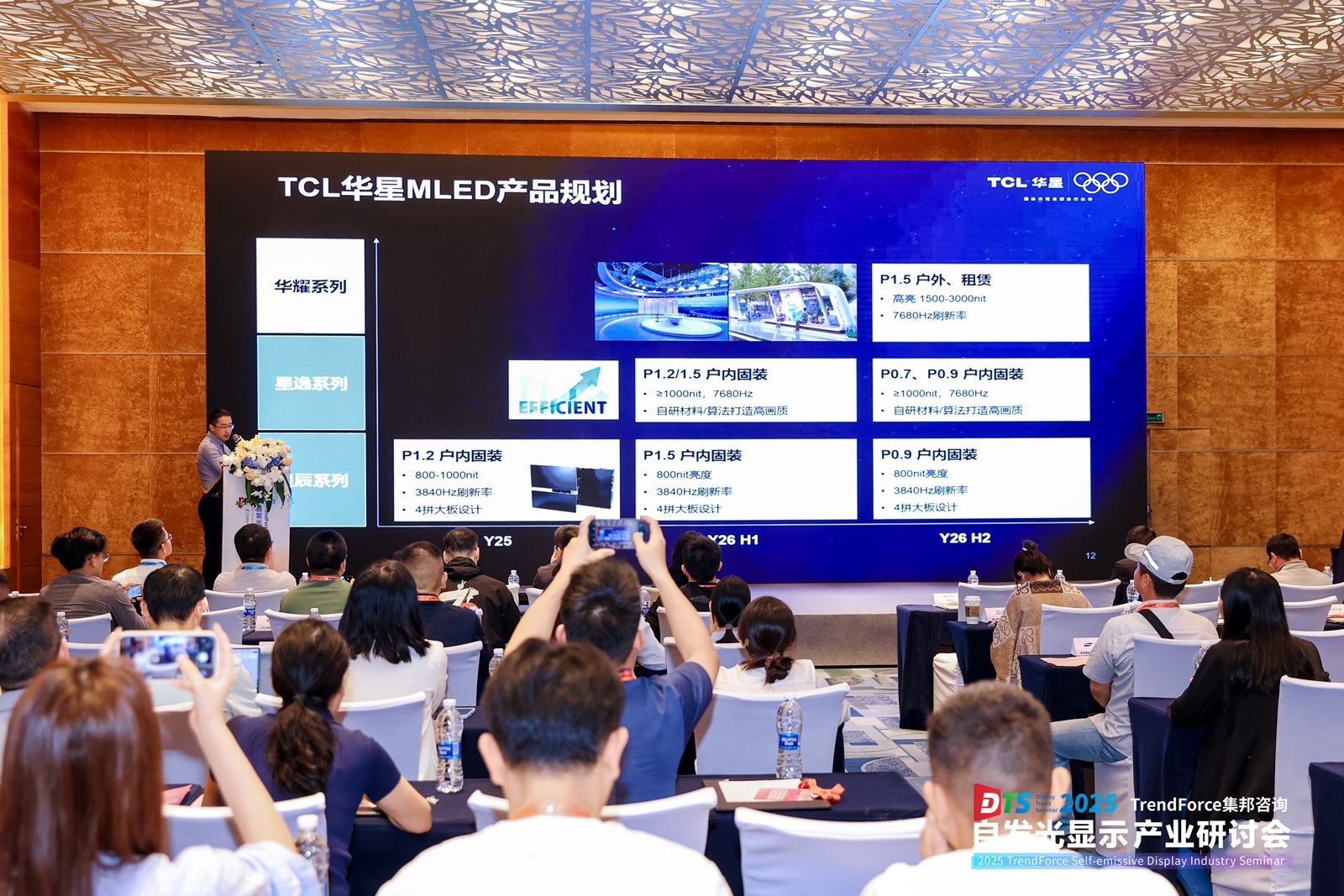 近日,TCL华星受邀出席2025自发光显示产业研讨会,该会议由 TrendForce集邦咨询旗下LEDinside与集邦Display联合举办。作为全球半导体显示行业领军企业,TCL华星LED显示研发总监陈麟发表主题演讲,围绕MLED战略布局、研发突破及产业协同方向展开分享,期待与产业链上下游伙伴携手共进,以技术创新为支点推动行业突破瓶颈、实现高质量发展。