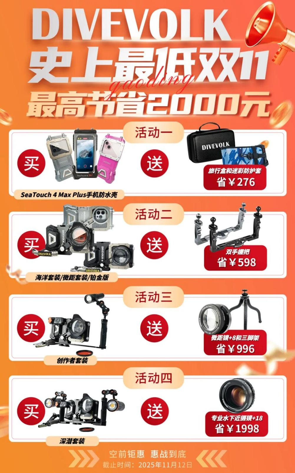 优惠信息:目前DIVEVOLK产品在线上商店(淘宝、京东、小红书商店等)正火热双11促销中,优惠力度巨大,淘宝不仅低至85折,叠加88VIP 9折优惠券使用,外加购买产品即可获赠高价值的配件。