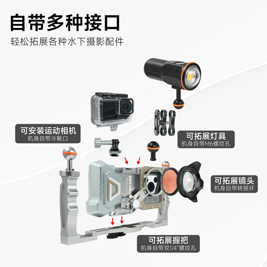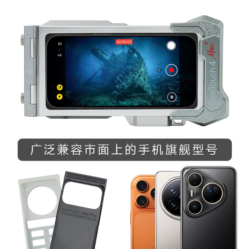 着眼于未来的移动技术浪潮,SeaTouch 4 Max 铂金版V2在设计上已充分考虑到前瞻性,将完美兼容已经发布的苹果iPhone 17系列。这种设计确保了用户在未来升级手机时,能够无缝沿用现有的潜水壳,从而尽享iPhone 在影像技术、处理性能和显示效果上可能带来的巨大飞跃。DIVEVOLK致力于为用户的投资提供长久价值,让一套装备即可应对未来的技术更迭,始终立于水下摄影的前沿。