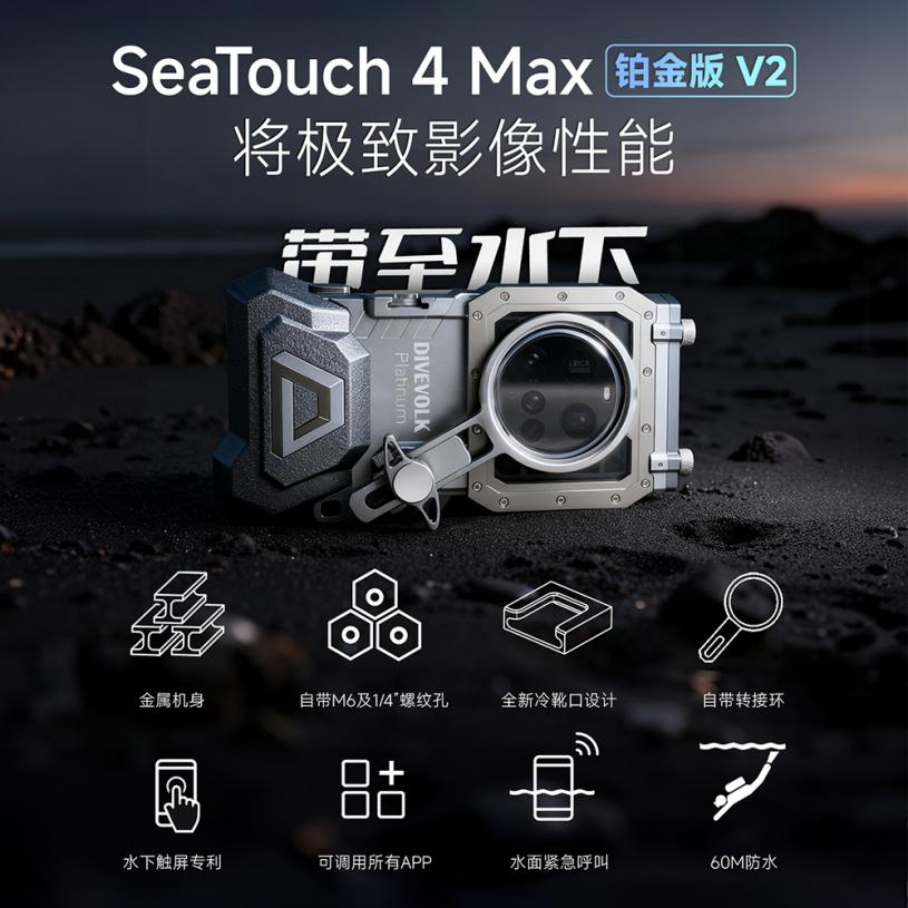【中国,深圳】– 2025年10月29日 – 全球领先的水下影像技术品牌DIVEVOLK今日正式发布其备受瞩目的旗舰产品——SeaTouch 4 Max 铂金版V2潜水手机壳。