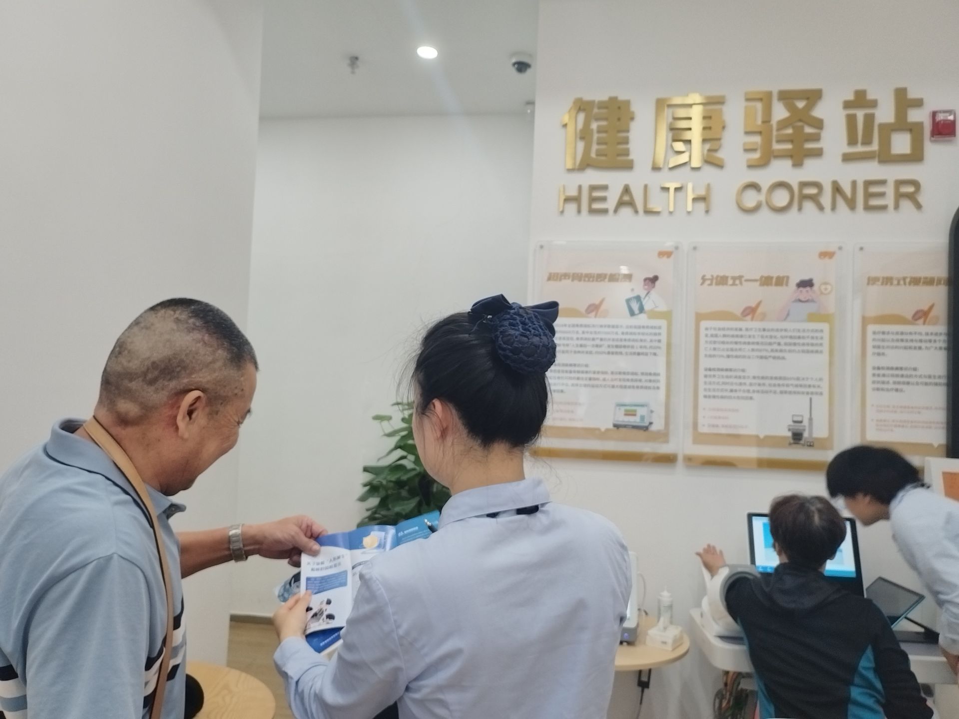 此外,支行巧妙地将健康关怀与金融知识普及相结合。工作人员根据老人们的检测情况,适时普及了高血压、糖尿病等常见慢性病的预防与保健知识。同时,现场发放了金融防诈骗宣传折页,通过真实案例讲解,帮助老年客户增强风险防范意识,引导其树立科学的健康观念和理财安全意识,守护好自身的“钱袋子”。