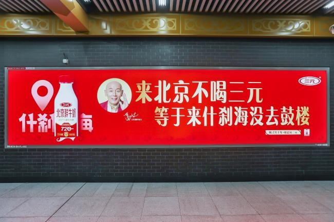在营销打法上,葛优的代言聚焦“地域深度渗透”,集中覆盖北京核心商圈、写字楼及住宅区等高触达场景,通过线下高频曝光强化“北京人的三元”这一情感联结,同时通过“喝了几十年,还是认三元”的经典内容复刻,打透北京消费者对品牌的历史记忆,持续巩固三元食品作为北京本土乳企的温度与厚度。