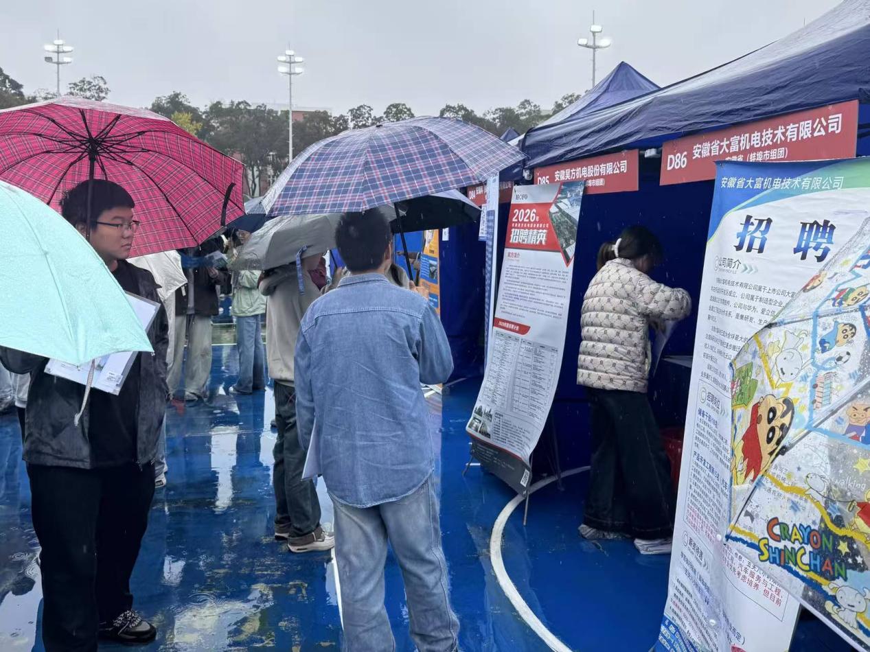 本次招聘聚焦蚌埠高端装备制造、新型显示材料等主导产业,精准匹配合肥工业大学机械工程、材料科学、电气工程等优势学科,共推出优质岗位309个。为让冒雨前来的学子充分感受蚌埠引才诚意,市人社局在露天操场中心区域搭建政策咨询雨棚,工作人员详细解读安家购房、职业发展等人才引进政策,为学子来蚌发展吃下“定心丸”。
