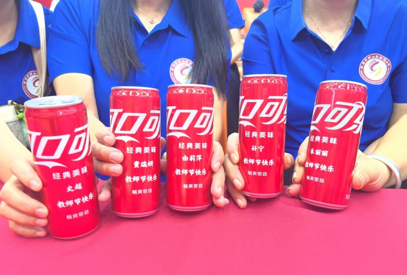 最惊喜的环节,莫过于一份专属定制纪念罐。中粮可口可乐山东公司提前为每位到访教师准备了独一无二的礼物——印有教师姓名的可口可乐定制纪念罐。一位老师拿到刻有自己的名字的可乐罐后表示,“春风化雨,时光知味,这瓶刻着名字的可口可乐很特别,不仅是份礼物,更像一份温暖的认可,这份心意会一直珍藏。”
