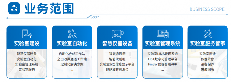 公司业务覆盖智慧科学仪器设备、实验室自动化工作站、实验室信息管理平台及专业服务四大板块。为生物医药、化工材料、高校科研、检验检测等领域的客户提供多方面的解决方案。