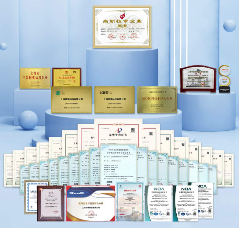 在资质方面,钒锝科技荣获“科技型中小企业”“创新型中小企业”“专精特新中小企业”、闵行区科技“小巨人”、大零号湾“优质科创企业”、上海市“AI+制造专业服务商”等多项认定,在多项创业比赛中荣获奖项。钒锝智慧实验室信息数字服务平台软件通过华为鲲鹏技术认证,且荣获2025年上海市优秀信创解决方案,公司部分智能设备获得防爆认证,为实验室安全运营提供有力的保障。