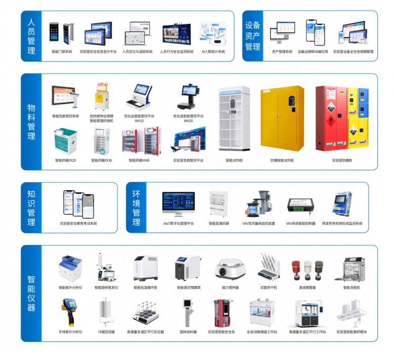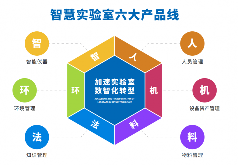 创新引领,夯实技术根基。在业务层面,钒锝科技采用“硬件+SaaS”模式,融合物联网、人工智能与自动化技术,围绕实验室的“人、机、料、法、环、智”核心要素,打造了六大产品线: