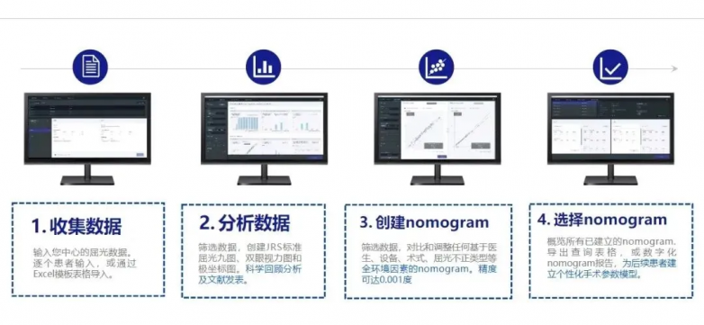 全飞秒4.0通过个性化Nomogram科学分析软件,会收集患者各方面的数据,随后对数据进行筛选回顾与量化分析,基于海量数据去调整各方面可能影响矫正精度的误差后,为不同医生建立起一组个性化用户专属Nomogram(预测模型),将临床效果用标准图表可视化地呈现在医生面前,帮助临床医生做更精细的术前设计,获得更贴近每一位患者适宜的矫正目标值!