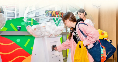 在长宁来福士东区三楼还藏着额外的惊喜—充满童趣的扭蛋机。每一台扭蛋机都印着MOJOFAMILY的萌趣图案,投入硬币,轻轻转动旋钮,就能收获一份未知的快乐。扭蛋内藏着迷你玩偶、钥匙扣、主题贴纸等小礼品,不少游客会专程前往打卡,一次次转动扭蛋机,期待解锁隐藏款礼品,这份小小的期待感,为秋日游玩增添了更多乐趣。