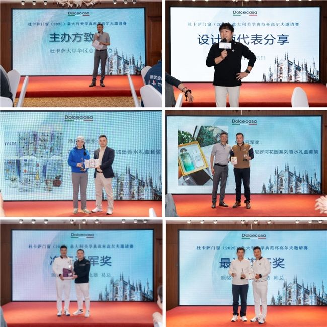 移步圣安球场,杜卡萨将品牌精神与高尔夫完美契合。精心搭配的能量补给、优雅的赛事礼仪、贴心的服务规范、丰盛的晚宴,无不体现着杜卡萨所倡导的“甜蜜又松弛的意式生活”理念。航拍镜头清晰记录下热烈的开球仪式和设计师们在绿茵湖畔优雅挥杆的精彩片段。