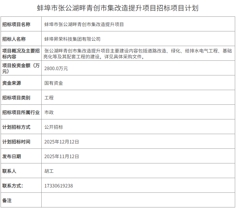 目前招标已经结束