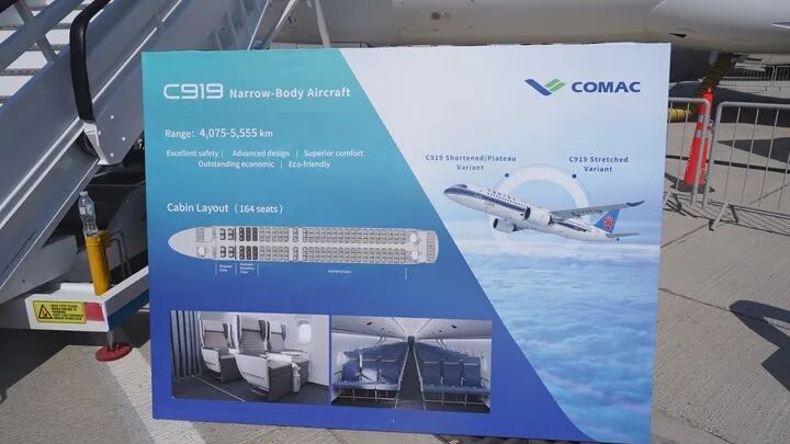 据了解,在航展现场的静态展示区,中国南方航空的C919飞机和中国商飞的C909公务机同台登场。
