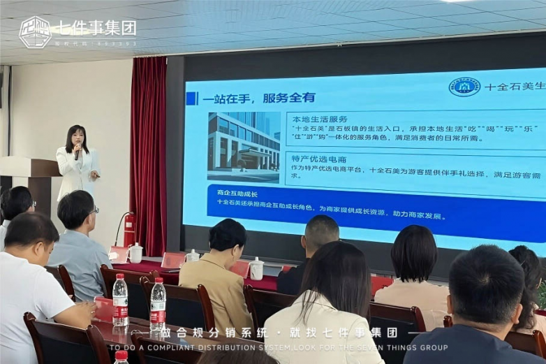 活动中,七件事集团贵州分公司负责人黄珊珊现场演示了为园区品牌商家量身定制的数字化经营工具。身为此次合作的指定核心企业服务商,七件事集团并非简单提供技术产品,而是将其十年深耕积累的 “商业模式与实战经验” 成功方法论注入石板园区,为园区品牌商家打造便捷高效的数字化生活场景。