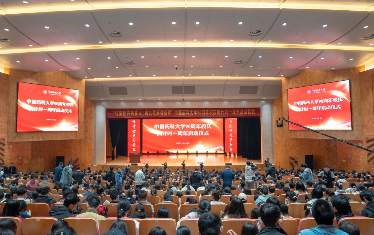 11月16日,中国药科大学90周年校庆倒计时一周年启动仪式在江宁校区大礼堂盛大启幕。中国工程院院士王广基、江苏恒瑞医药董事长孙飘扬、花红药业集团董事长韦飞燕等杰出校友代表齐聚现场,与150余万名师生、校友及各界人士共襄盛典。