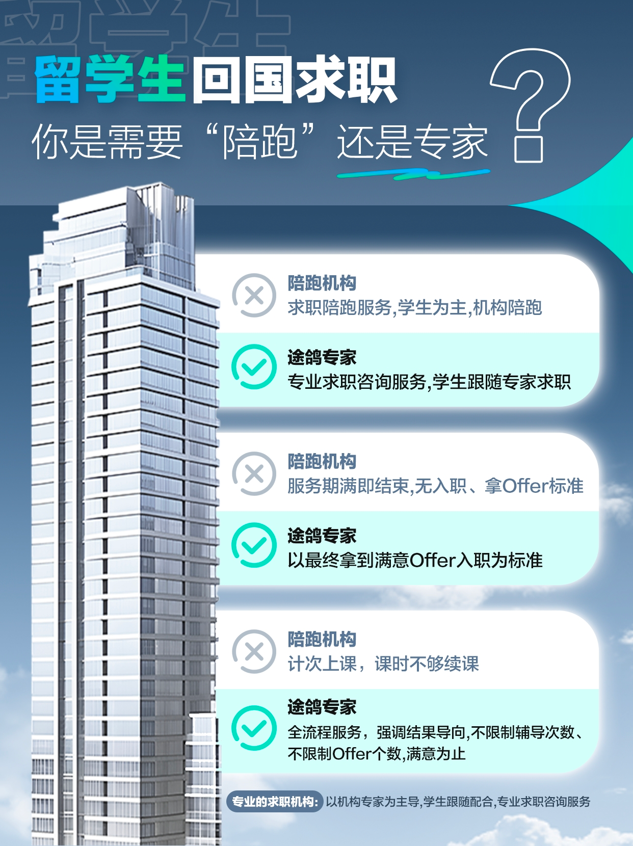 对于寻求回国发展的留学生而言,选择求职服务机构,本质上是在选择一种“为结果负责”交付模式。是选择独自承担风险的“求职陪跑”,还是选择有结果保障的“求职专业咨询服务”,这一选择可能直接影响职业起点的质量与高度。