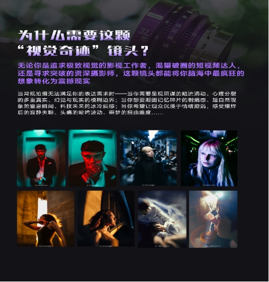 产品设计深度贴合当代多元创作场景需求。全金属机身兼顾耐用性与便携性,37mm 版本仅重 344g 的轻量化特性,完美适配制作团队户外高频移动拍摄;PL 卡口设计兼容全画幅机身,且可通过转接环适配Z/R/E/L等主流微单相机系统,解决多设备协作的适配难题。此外,镜头专属紫色外观设计,既延续 “繁花绽放” 的创意理念,又在专业设备中形成高辨识度视觉符号,上市首周便收获大量创作者 “特效新奇独特、打开国产工业之美「新高度」” 的正面反馈。