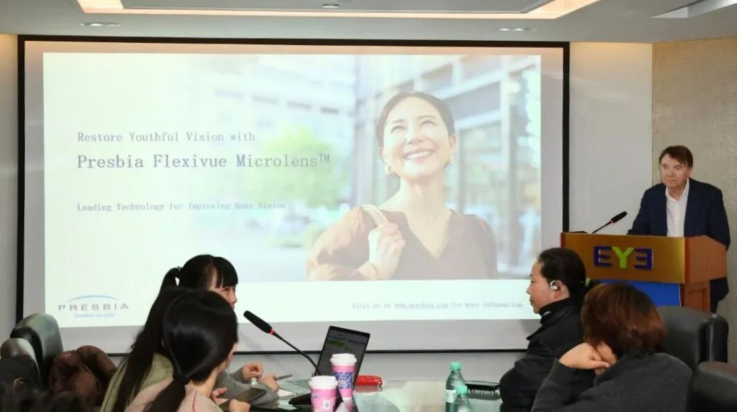 11月17日,Presbia集团CEO戴斯祺博士与首席科学家Vladimir Feingold博士带领临床团队到访北京爱尔英智眼科医院,联合举办老花矫正新技术科普分享会暨张丰菊教授荣获国际老视矫正专家认证仪式。