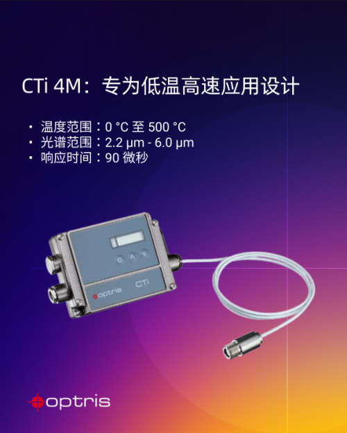 Optris最新推出的CTi系列工业红外测温仪,包括CTi 3M和CTi 4M两款型号,采用紧凑型两件式设计,为金属加工、塑料成型等行业提供高精度、快响应的非接触式温度测量解决方案。