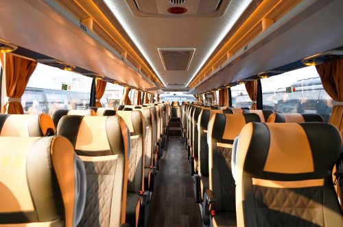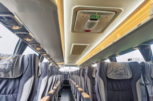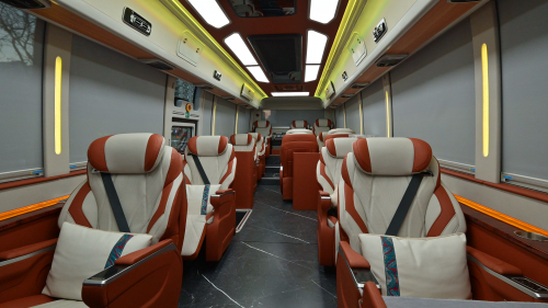 面对人们对出行舒适性越来越高的需求,苏州金龙在新V系基础上深度定制了“海格公路和谐号”,专为高品质旅游及公商务接待打造,内部搭载饮水机、冰箱、制氧机等多功能服务配置,极大提升了出行的舒适性、便捷性和体验感。