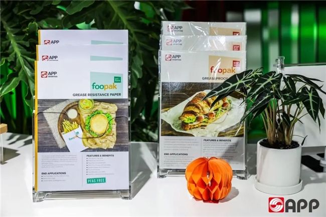 本届进博会上,金光集团APP(中国)带来了多款创新环保纸品,其中Foopak Natural Greaseproof Paper环保无塑防油纸和Enza Shield高阻隔牛皮纸的首秀尤为引人关注。这些产品共同的特点是聚焦“以纸代塑”的技术突破,为食品包装行业提供了新的环保解决方案。