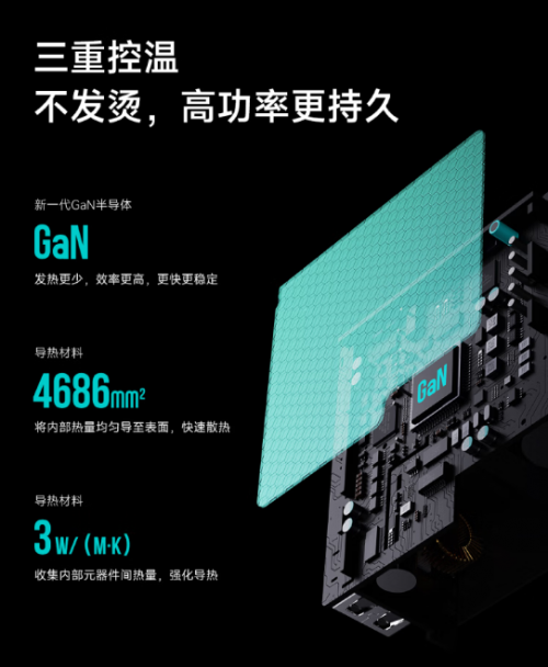 第四,全新米物自研智能动态快充技术IDC 3.0(Intelligent Dynamic Charging 3.0),充电过程中能够根据各个设备的规格、协议、电量等做实时智能分配,并且动态调节,比如在给电池容量更高的笔记本与电池容量相对较低的手机同时充电时,会进行智能分配功率,输出功率可达 100W+30W。相对电量较满的设备,会实时动态分配相对更多的功率给到电量告急的设备,一句话概括就是“按需分配,实时调控,最佳能效,快到飞起”!