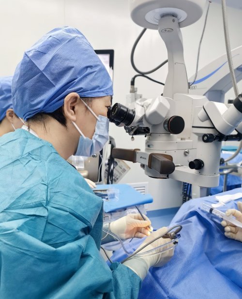 面对这一棘手情况,李秋梅主任与医疗团队没有退缩,反复研讨优化方案,力求以最稳妥的方式帮助孙奶奶提升视力。经过多次推演,团队决定采用飞秒激光辅助白内障超声乳化手术 —— 将角膜切口、环形撕囊、劈核等关键步骤自动化,先劈核再乳化吸出减少超声能量使用,既缩短手术时间、减小切口,又能最大限度降低对周围组织的损伤,保护孙奶奶珍贵的角膜内皮。同时,手术中使用保护性更强的弥散性粘弹剂,在手术中形成稳定保护层进一步守护角膜内皮。