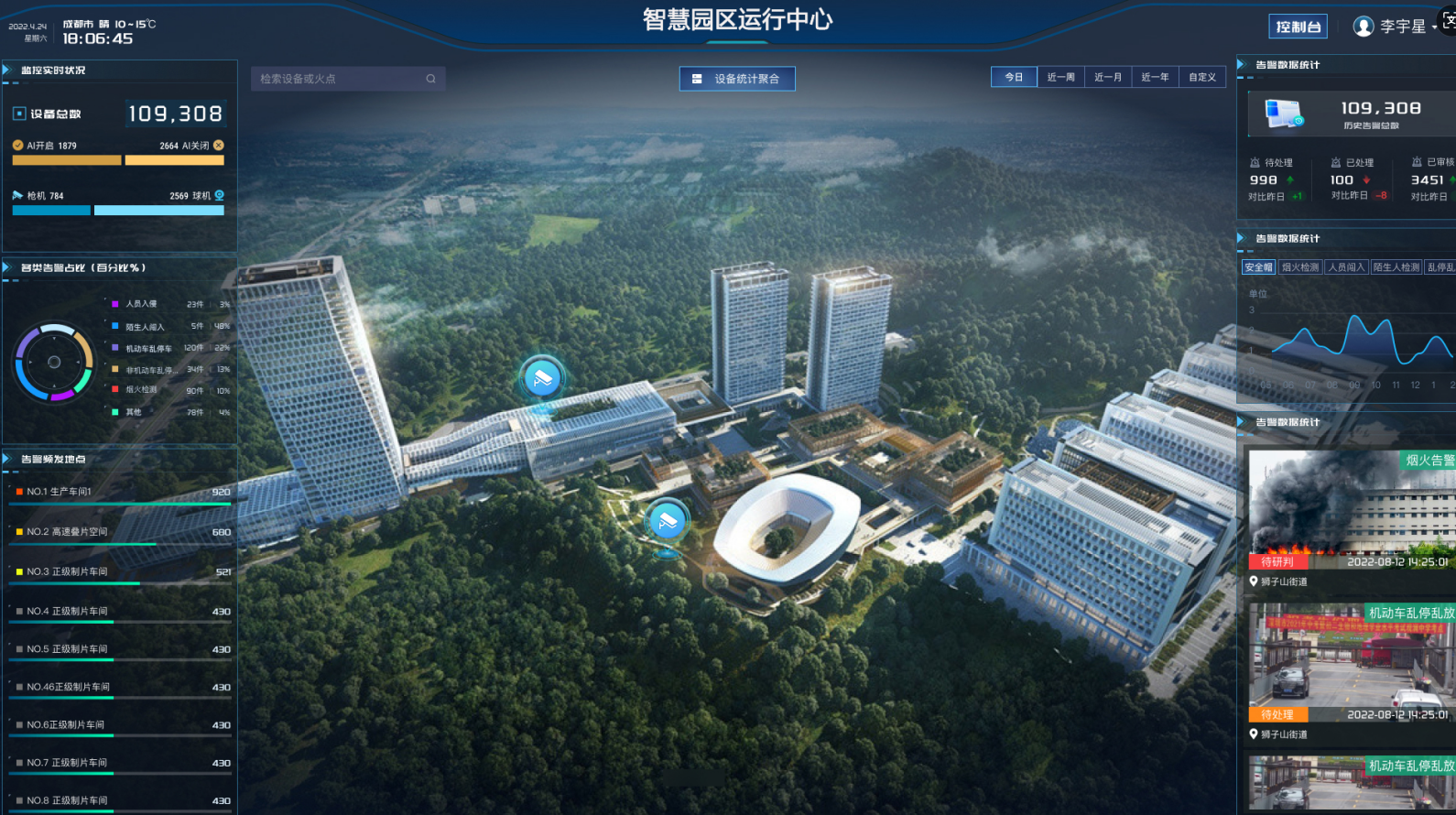 安全风险难控且成本高:人工巡检与单点监控存在盲区,消防隐患、违规作业等风险难以及时发现,人工审核告警工作量大、误报率高,监管陷入被动,与 AI + 园区的高效管控目标相悖;