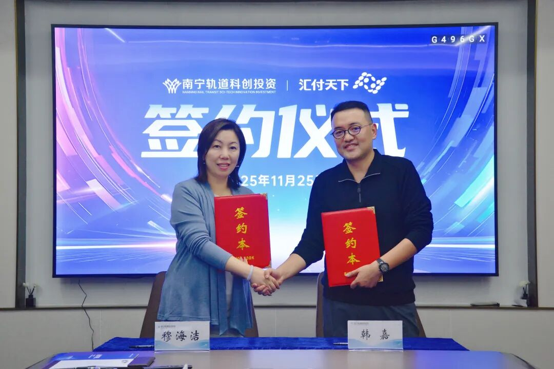 近日,汇付天下与南宁轨道科创投资有限公司(以下简称“南宁轨道科创”)在广西南宁签署战略合作协议。汇付天下总裁穆海洁,南宁轨道科创党委书记、董事长韩嘉出席签约仪式。双方将在支付中台建设、产销融合升级及跨境支付创新等多个核心领域展开深度协同,实现数字化与国际化的双向奔赴。