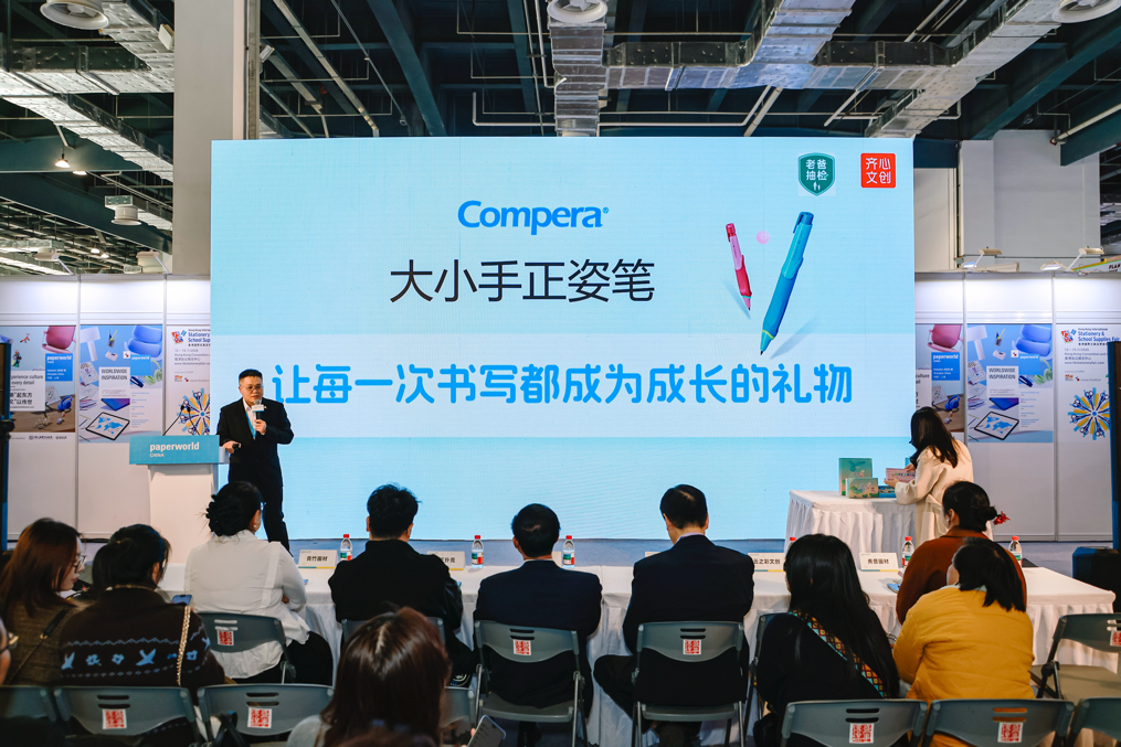 2025中国国际文具及办公用品展览会近期在上海世博展览馆隆重举办,是亚洲领先的行业商贸展,聚焦“谷子经济”与传统文具产业深度融合,打造全球共商、共享、共话高质量发展的专业化平台。在展会首日举办的2025中国文教办公用品行业新品首发活动上,齐心集团自有品牌产品“Compera大小手正姿笔”亮相,现场展示了该产品的专业正姿设计与科学正姿、分阶启蒙的研发理念。