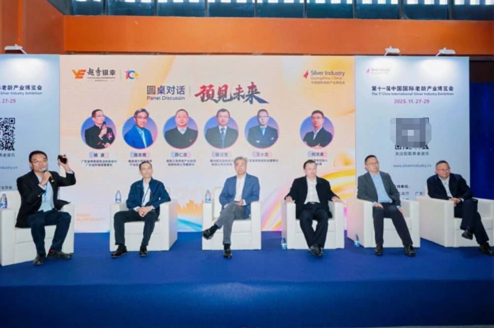 主题演讲后,会议进入“预见未来”主题圆桌对话环节,由越秀银幸创始人、总经理何洪涛主持,杨波(广东省养老服务业协会会长)、陈志育(粤港澳大湾区康养产业促进会会长)、薛仁政(贵阳工商养老产业投资发展有限公司董事长)、杨汪宝(惠州颐讯信息技术有限公司总经理)、王小龙(寸草春晖养老机构董事长)五位行业领袖参与讨论。
