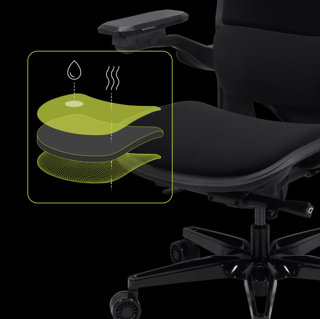 针对传统电竞椅久坐闷热痛点,MAG A10采用ERGO-COOL透气系统: