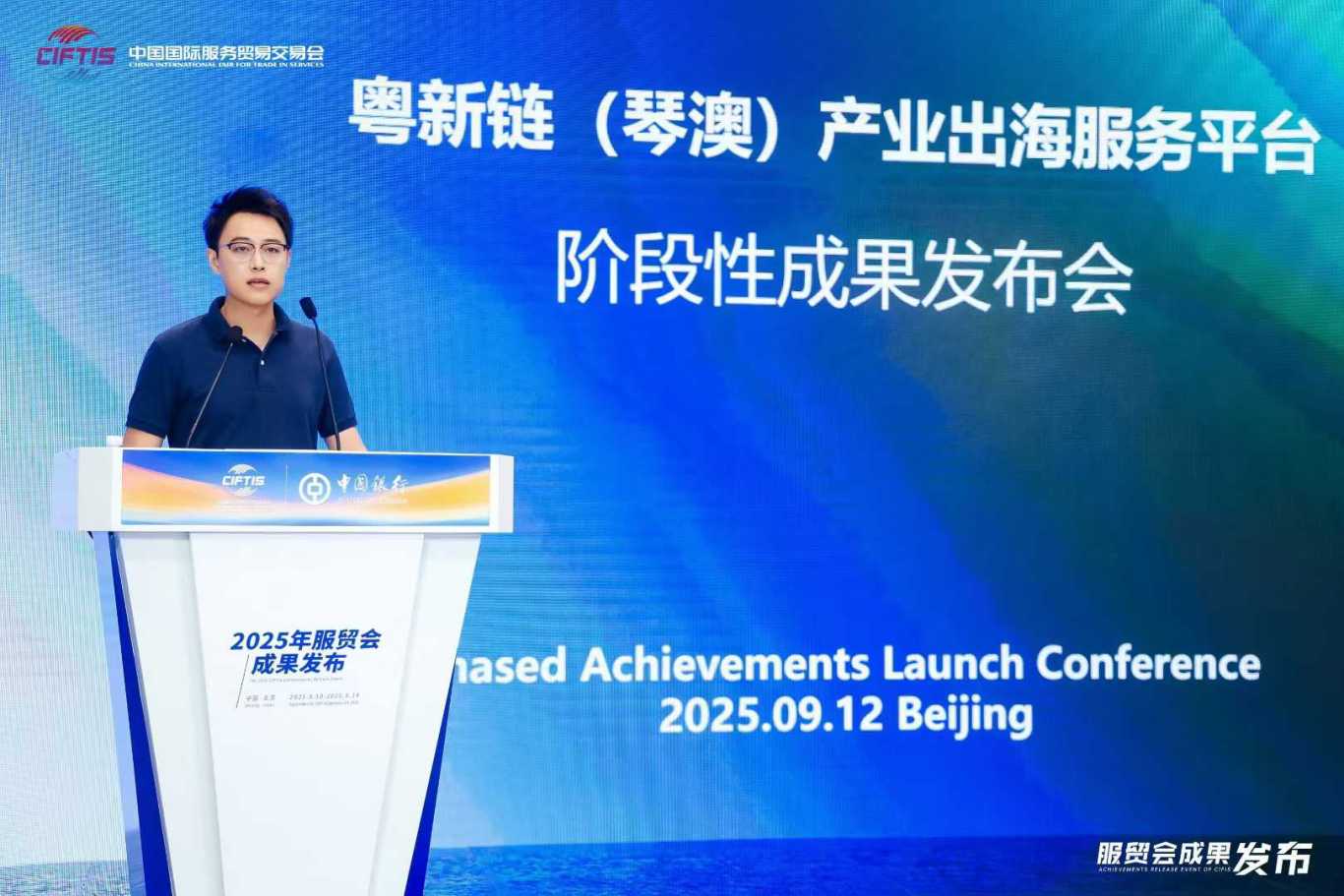 近日,粤新链(琴澳)产业出海服务平台在 2025 年服贸会省区市企业创新成果新闻发布会上发布出海服务成果,平台 CEO 汪千皓围绕产业全球化服务模式作核心分享,成为展现大湾区产业链协同优势的重要代表。此次发布会聚焦企业创新实践,粤新链的成果展示凸显了中国产业出海服务的技术突破与生态价值。