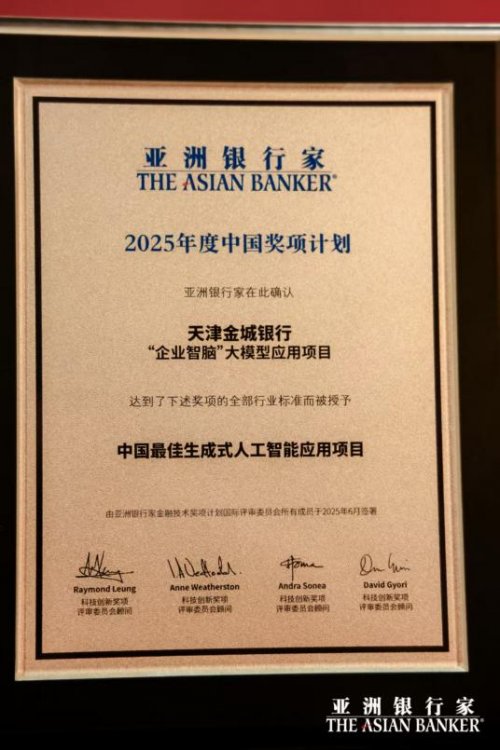 在近日举办的第24届中国未来金融峰会上,《亚洲银行家》主办的2025年度中国奖项计划结果公布,金城银行“企业智脑”大模型应用项目获“中国最佳生成式人工智能应用项目”。评审认为该项目彻底革新银行后台运营,是人工智能与金融场景深度融合的典范。作为数字科技银行,金城银行在科技金融领域的探索与实践,通过此项目再次得到了行业的高度认可。