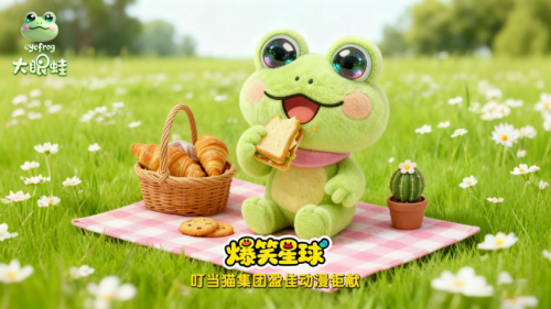 这只软萌可爱的 IP 形象,诞生于 2006 年,是叮当猫集团旗下广东盈佳动漫文化有限公司,打造的动画《爆笑星球》核心主角之一。在动画剧情里,大眼蛙总以 “搞笑 + 价值” 的轻喜剧模式传递理念:把多肉植物误认成迷你蛋糕、错把朋友的假发当作垃圾丢弃…… 在这些充满生活气息的乌龙日常里,轻松植入“绿色好生活,自然伴我行”的IP品牌理念,它的口头禅“和朋友一起做环保,比一个人完美完成更有意思”,更精准戳中了Z时代的社交共鸣与价值偏好,让环保不再是生硬的说教,而是充满温度的日常陪伴。