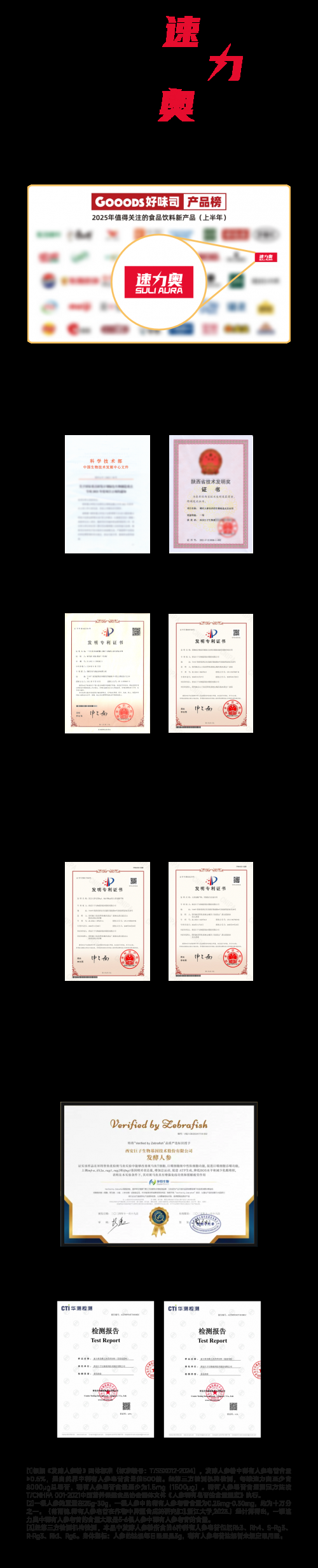 速力奥突破传统选择,采用创新专研成分发酵人参粉(富含6种稀有人参皂苷)[3]作为核心原料。同时复配低含量咖啡因与牛磺酸,实现科学配比。