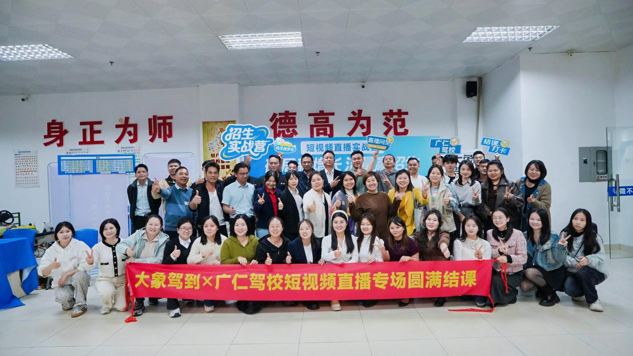 2025年12月2日至3日,大象驾到新媒体学苑培训团队走进东莞广仁驾校,开展为期2天1夜的《短视频直播进阶实战训练营》。汇聚了来自广仁、广俊、畅通、考啦、恒鑫、车之道等驾校120余名驾培从业者参与。