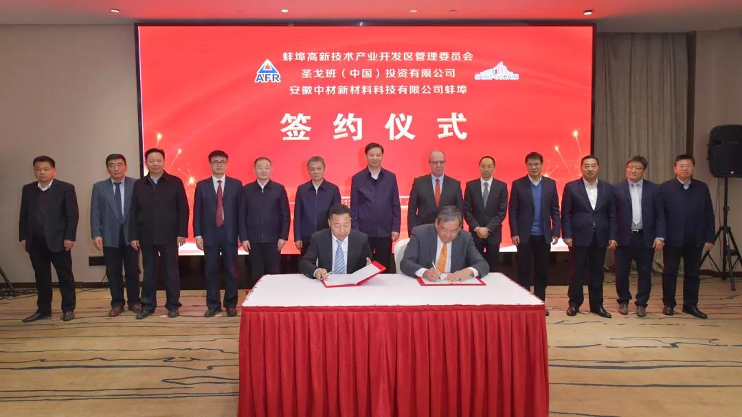 蚌埠新闻网讯(首席记者 顾楷)12月29日下午,蚌埠高新区管委会与圣戈班(中国)投资有限公司、安徽中材新材料科技有限公司签约,合作共建锆质新材料及硅基材料项目。市委书记黄晓武出席签约仪式并致辞。市领导操龙灿、许光友、葛锐、高尚,市政府秘书长吴道俊;圣戈班亚洲区创新副总裁阿兰 扎诺礼,圣戈班中国区陶瓷材料副总裁王培明;安徽中材新材料科技有限公司执行董事魏福德出席。